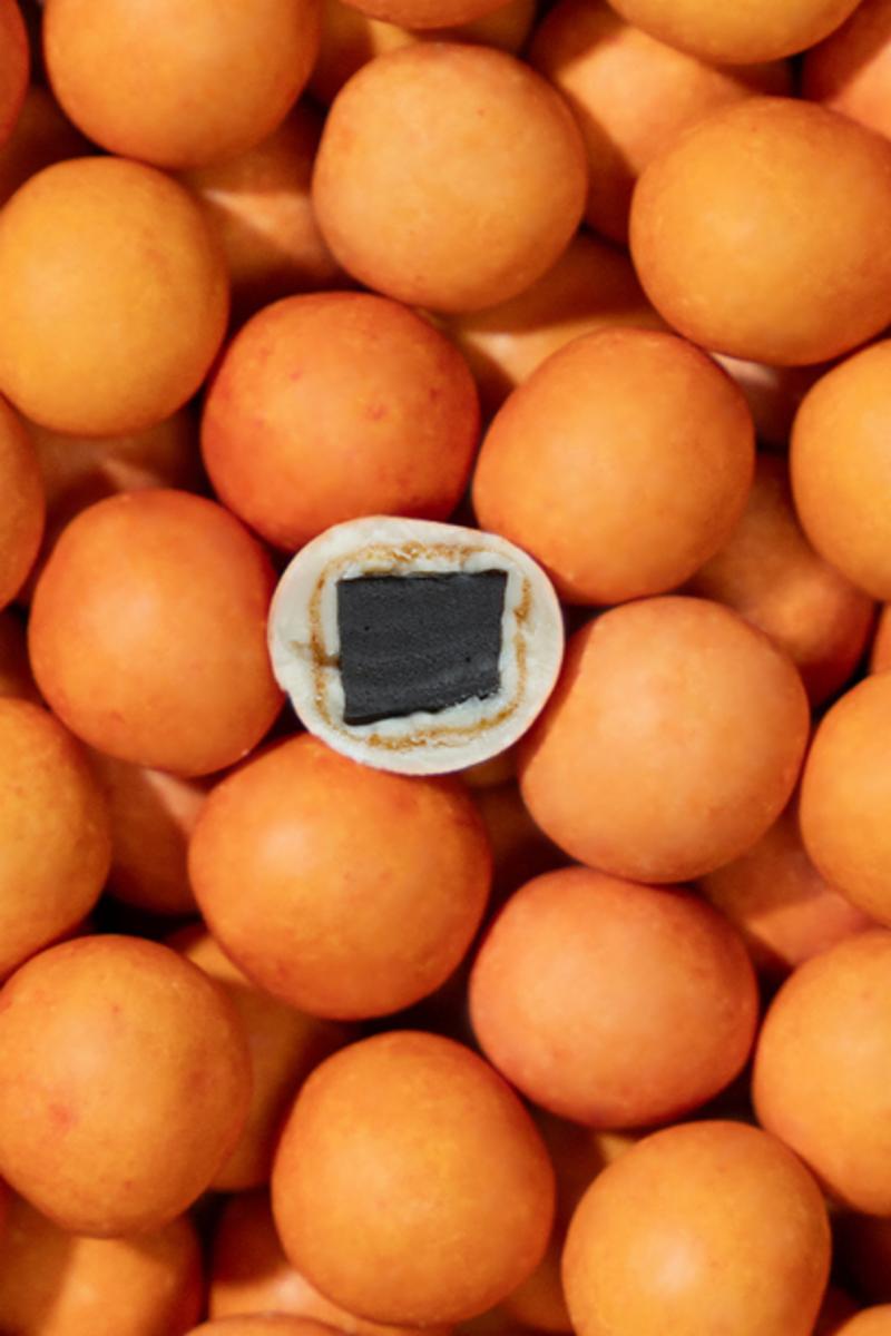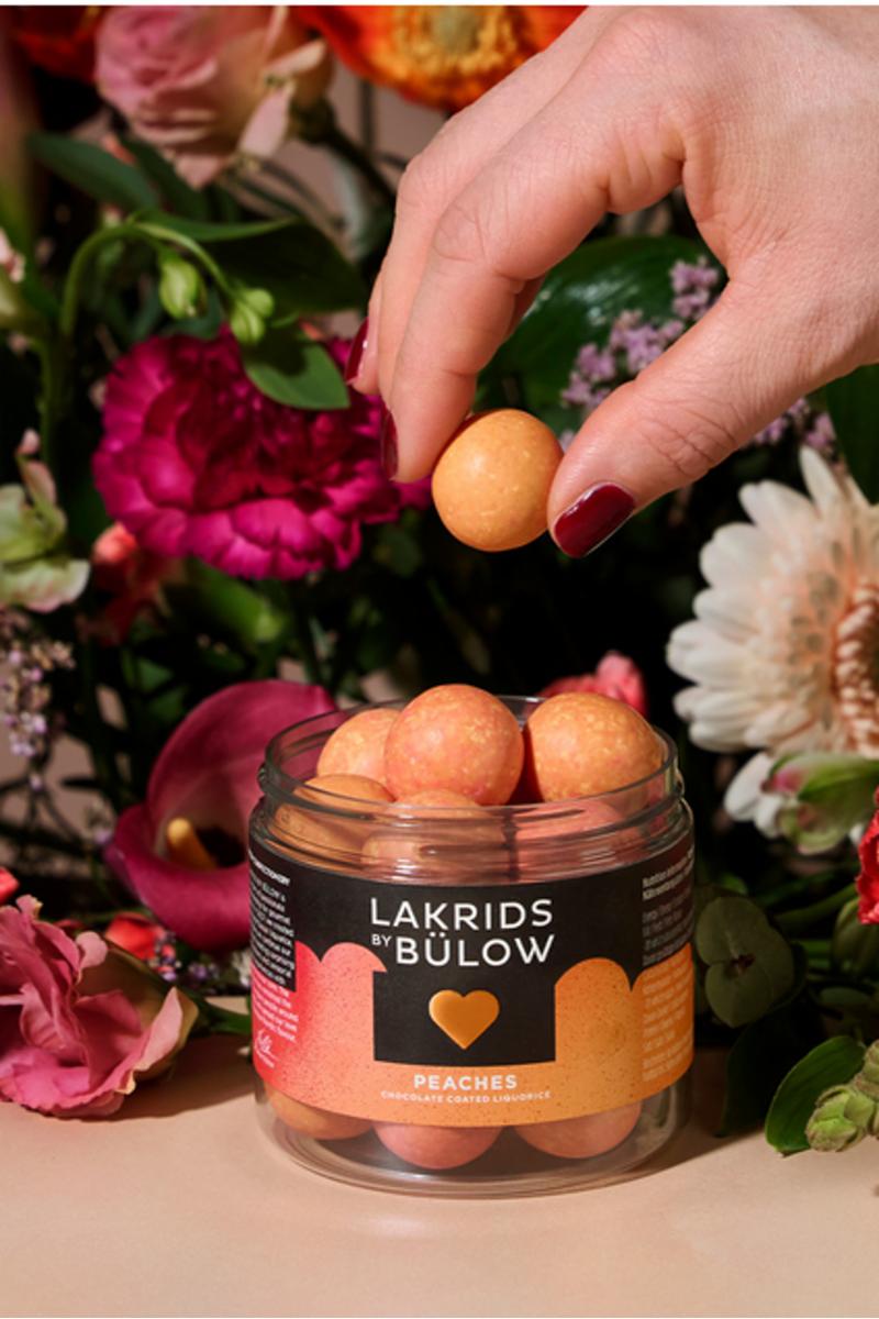 Fersken er også kjent som dronningen blant fruktene, og vi forstår hvorfor. PEACHES forener søte noter fra saftige fersken med en kjerne av søt lakris, det hele dekket av myk hvit sjokolade, med salmiakk og et hint av pasjonsfrukt. Et knasende sukkerskall sørger for sprøhet.